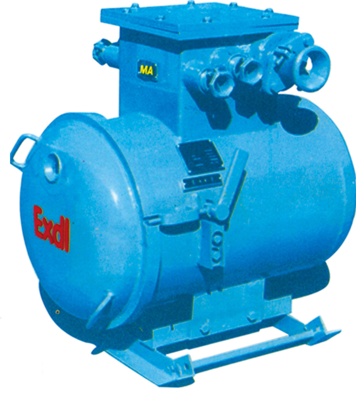 綜合裝置主要由隔爆外殼、干式變壓器、無觸點機芯三部分組成。隔爆外殼為圓筒型,具有凸出的底和蓋,殼蓋與殼身采用轉蓋止口結構, 開啟方便。外殼上部有一接線箱作為引進和引出的電纜用.外殼右側裝有操作隔離開關的手柄和檢查短路、漏電保護的試驗按鈕,并有可靠的機械聯鎖裝置,殼蓋上方有觀察窗,可以從外面觀察指示燈狀態。干式變壓器與機芯的聯結采用端子板,檢修時機芯可獨立拿出。